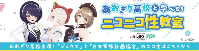 ジェクス株式会社 ジェクス株式会社(本社:大阪市中央区谷町、代表取締役社長:梶川 裕次郎、以下ジェクス)と一般社団法人日本家族計画協会は、「性の悩み」の“いま”を人気VTuberグループあおぎり高校のメンバーと学ぶ『あお…