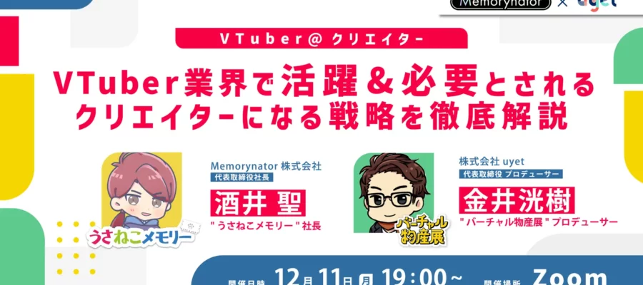 株式会社uyet VTuberに関する事業を多数展開する株式会社uyet(本社:東京都渋谷区 代表取締役:梶田大樹・金井洸樹)は、Memorynator株式会社(本社:福井県坂井市、代表取締役:酒井聖)と共同で、2023…