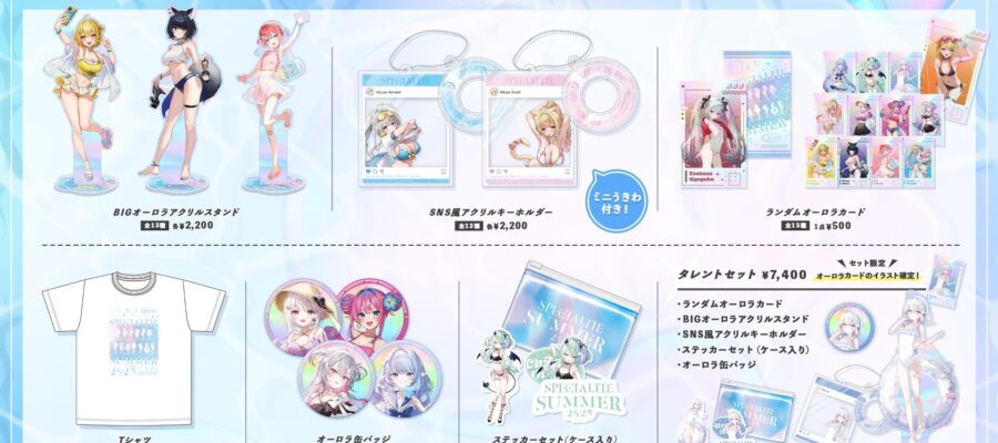 VTuberプロダクション すぺしゃりてが、サマーグッズ2025を2025年8月16日~31日まで受注販売をおこなっている。 本阿弥あずさ、領国つかさ、藍坂しう、小鳥谷なの、ミーニャ・スコットなど、日本在籍メンバー13人…