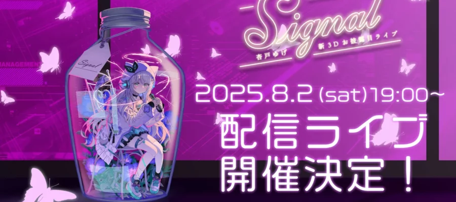 株式会社アニメイトホールディングス 「Signal」~杏戸ゆげ 新3Dお披露目ライブ~ を8月2日(土) 19:00より配信にて開催決定! チケット販売は本日、7月26日(土) 20:30 より以下のプラット…