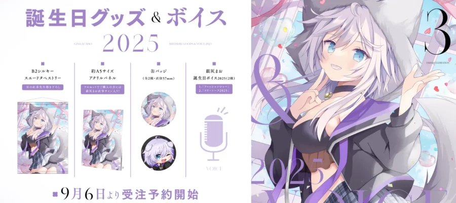 アナログ 2025年9月6日(土)00時00分~2025年10月6日(月)23時59分までの期間、ハコネクト公式BOOTHにて『銀灰まお誕生日グッズ&ボイス』を販売いたします。 ■『銀灰まお誕生日グッズ&…