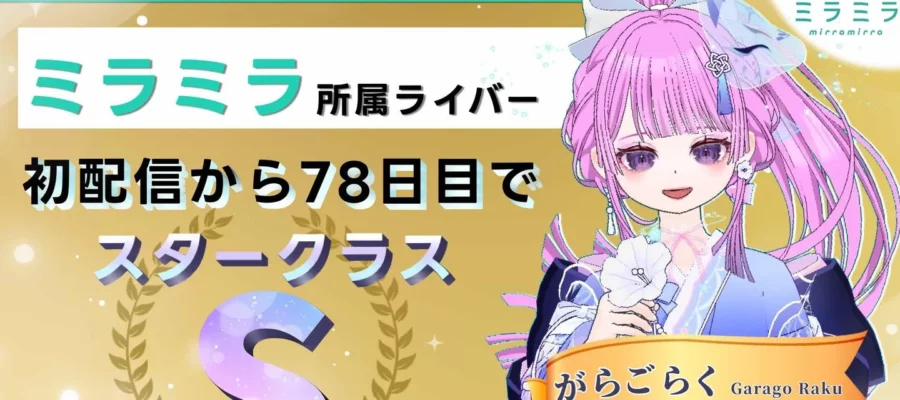OTAGROUP株式会社 OTAGROUP株式会社(代表取締役:下西 竜二)はスマホ画面共有型ゲーム配信プラットフォーム「Mirrativ」パートナー事務所「ミラミラ」に所属するライバー「がらご らく」が初配信から78日…