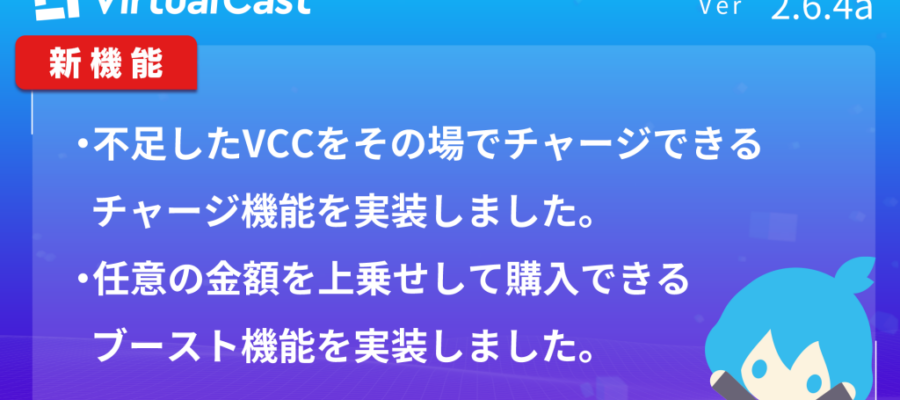 バーチャルキャストは17日、同社が運営する3Dデータ共有サービス「バーチャルキャストストア」のアップデートとして「チャージ機能」と「ブースト機能」を実装。 ●チャージ機能商品購入の際、不足しているVCCをその場でチャージ…