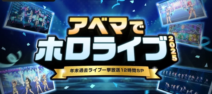 ABEMA 新しい未来のテレビ「ABEMA」は、2025年12月28日(日)に、大人気女性VTuberグループ「ホロライブ」の音楽ライブの中から厳選した5公演の全編無料放送や、ショートアニメの一挙放送をお届けする特別企画…