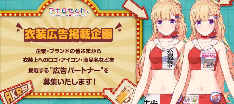 ホロライブ アキ・ローゼンタールが数年ぶりとなる新衣装「ダイナー衣装」を公開。なんとその衣装に掲載すrつ一般企業からの広告を募集することを、配信内&ホロライブ公式Xで発表した。 Googleの専用応募フォームからより必要…
