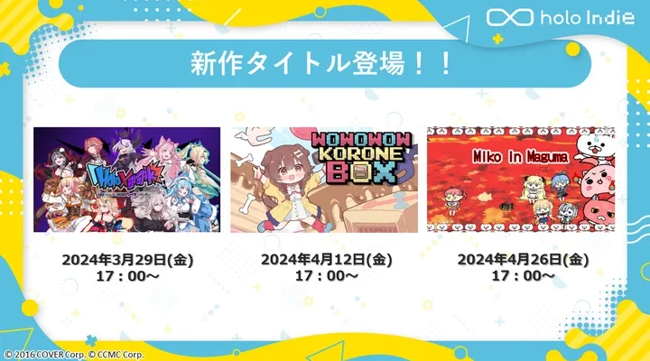 カバー株式会社 holo Indieでは「ホロパレード」に続き、「Holo X Break」「WOWOWOW KORONE BOX」「Miko in Maguma」の計3タイトルを新たにお迎えし、順次Steamにてリリー…