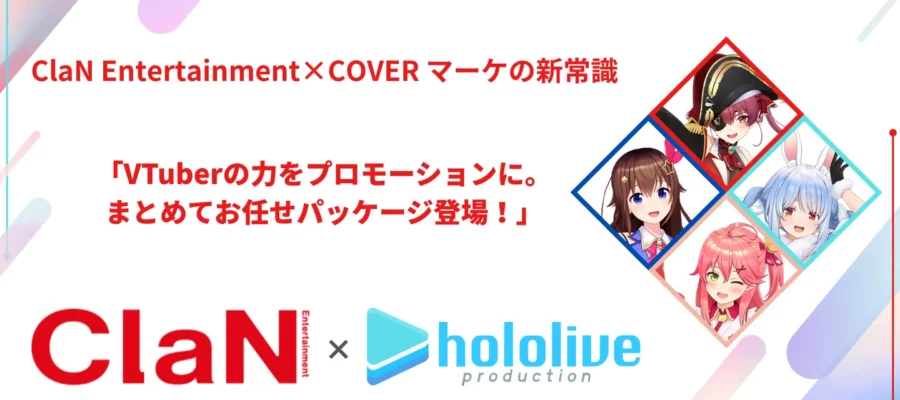 ClaN Entertainment 株式会社ClaN Entertainment(本社:東京都港区東新橋1-6-1、代表取締役社長:大井基行、以下「ClaN」)は、カバー株式会社(本社:東京都港区三田3-5-19、代表…