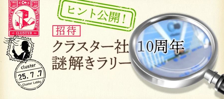 クラスター株式会社 国内最大級のメタバースプラットフォーム「cluster」を運営するクラスター株式会社(本社:東京都品川区、代表取締役CEO:加藤直人、以下「クラスター」)は、サービス10周年を記念した特別謎解きイベン…