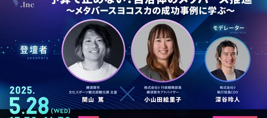 株式会社V 株式会社V(本社:東京都品川区、代表取締役兼CEO:藤原光汰、以下 V)は、2025年5月28日(水)15:30より、自治体向けオンラインセミナー「予算で止めない!自治体のメタバース推進 ~メタバースヨコスカ…