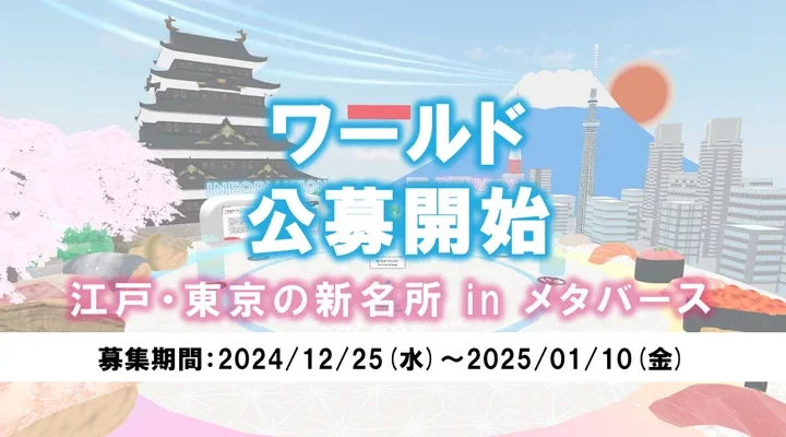 Virtual Edo-Tokyo広報事務局 東京都では、都が運営する様々なメタバース等のコンテンツを一元的に発信する「Virtual Edo-Tokyo」ワールドをプラットフォーム「cluster」上で公開しています…