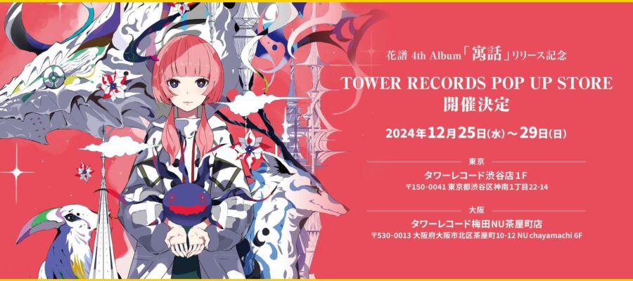 KAMITSUBAKI STUDIOは16日、バーチャルシンガー・花譜(かふ)の4thアルバム「寓話」リリースを記念し、タワーレコード渋谷店(東京)、タワーレコード梅田NU茶屋町店(大阪)にてポップアップストアを開催する…