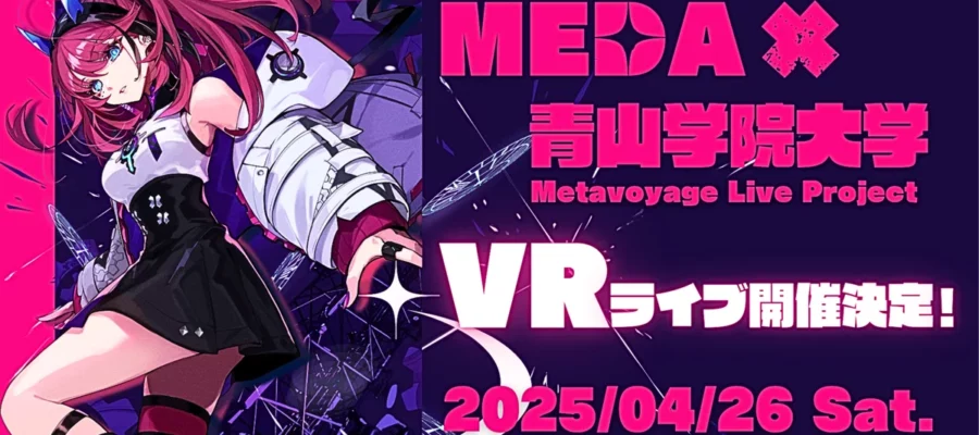 青山学院大学の学生が運営するVRライブ制作団体MetaVoyage実行委員会は8日、無料VRライブ「MetaVoyage Live Project vol.3 with MEDA」を、2025年4月26日(土)に開催、Y…