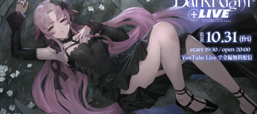 KAMITSUBAKI STUDIO / SINSEKAI RECORD所属のバーチャルシンガー・琶舞(ヨミ:ベマ)が、初のカバーライブ「Dark Night LIVE」を2025年10月31日にYouTubeで全編無料…