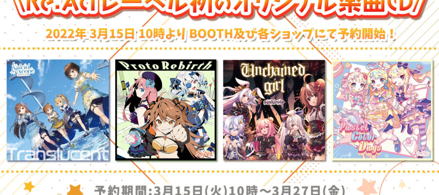 mikaiが運営するバーチャルタレント事務所「Re:AcT」は、自社展開の音楽レーベル「ReAliz」「sinkirow」「Parfait」「kaleidscope」より初のオリジナル楽曲CDを4月25日に発売すると発表…