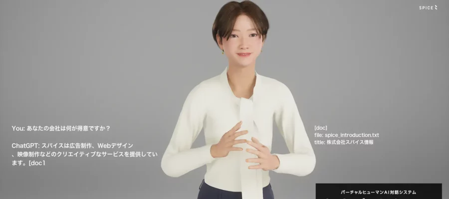 株式会社スパイス 株式会社スパイス(取締役社長:岡田 亮大、本社:東京都港区赤坂)は2023年12月4日、ChatGPT、Azure OpenAIを用いたバーチャルヒューマンAI対話システム「YUZU Chat」をリリー…