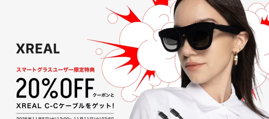 XREAL AR(拡張現実)グラスを開発・販売しているXREALは、これまでにスマートグラス(他社製品、XREAL製品を含む)を購入した方限定で、最新ARグラス「XREAL One」を20%オフで購入できるクーポンとC-…