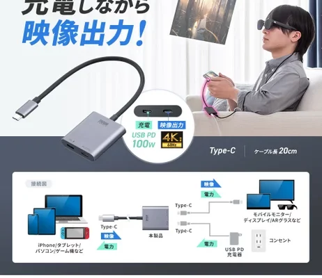 サンワサプライ株式会社 サンワサプライ株式会社(本社:岡山市北区田町1-10-1、 代表取締役社長 山田 和範)が運営している直販サイト『サンワダイレクト』では、USB Type-C接続でスマホを充電しながら、Type-…