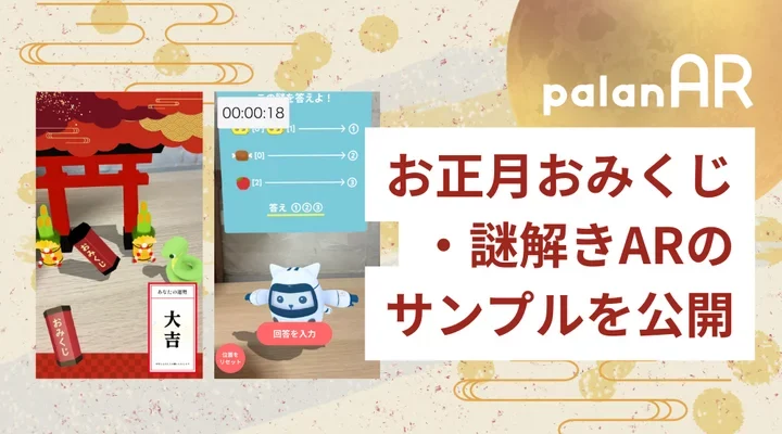 株式会社palan 株式会社palan (本社:東京都渋谷区、代表取締役:齋藤 瑛史)が提供するWebAR作成サービス「palanAR」で、新年に合わせたおみくじAR・謎解きARが体験できるサンプルを追加・公開いたしまし…