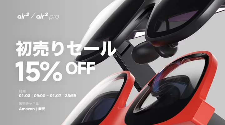 XREAL AR(拡張現実)グラスを開発・販売しているXREAL(日本法人:日本Xreal株式会社)は、2025年1月3日(金)~1月7日(火)の期間限定でXREALが提供するARグラスをお得にゲットできる「初売りセール…