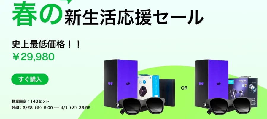 XREAL AR(拡張現実)グラスを開発・販売しているXREALは、3月28日(金)~4月1日(火)の期間限定で、XREAL史上最安値のXREAL Air+イヤホンまたは充電器のセットの福袋を数量限定でAmazon.co…