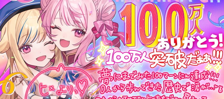 田中ヒメと鈴木ヒナによるユニット・HIMEHINAが、2024年12月26日夜からスタートした配信にて、YouTubeチャンネル登録者数100万人を達成した。2018年5月からユニットとしての活動をスタートしてから約7…
