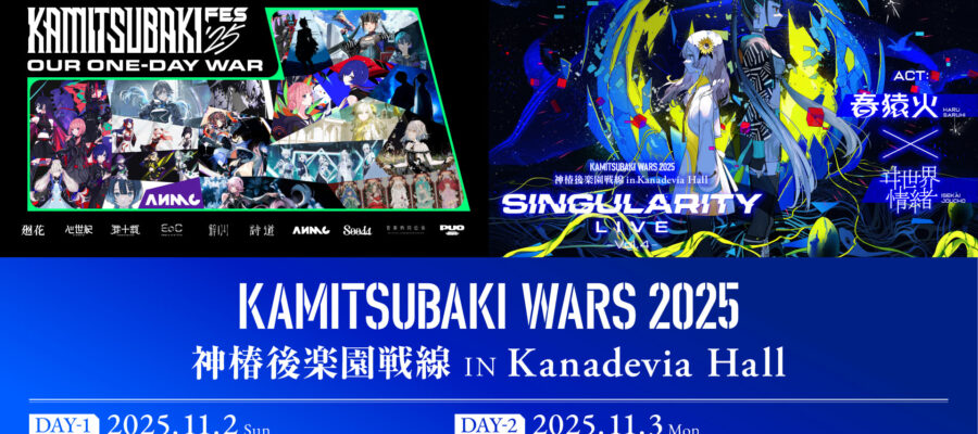 KAMITSUBAKI STUDIOは27日、ライブイベント「KAMITSUBAKI WARS 2025 神椿後楽園戦線 IN Kanadevia Hall」を2025年11月2日(日)・3日(月)の2日間に渡り開催する…