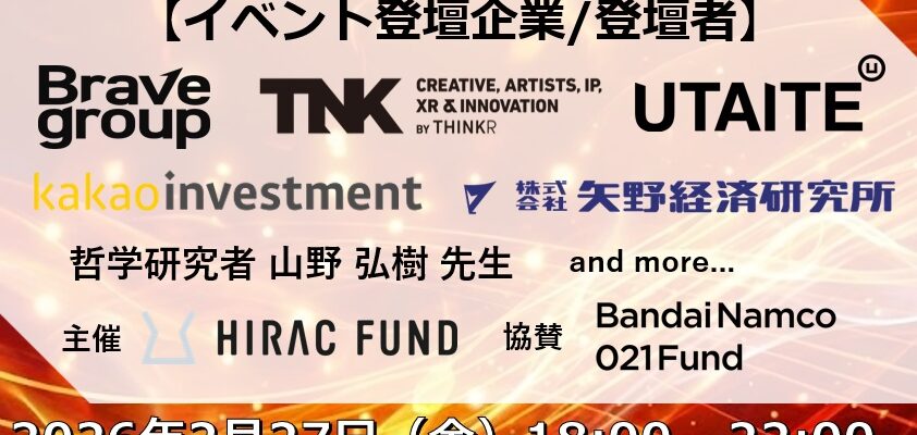 カンファレンス「バーチャルエンタメの最前線と未来を徹底解剖」を取材 今後を見据える重要な視点の数々に震えた 2026年4月8日 12:00 Business 2026年2月27日(金)、HIRAC FUNDが主催するカンファレンス「バーチャルエンタメの最前線と未来を徹底解剖 バーチャル市場の現在地」が開催されました。 ベルサール六本木にて開催されたこのイベントには、Brave… 続きを読む