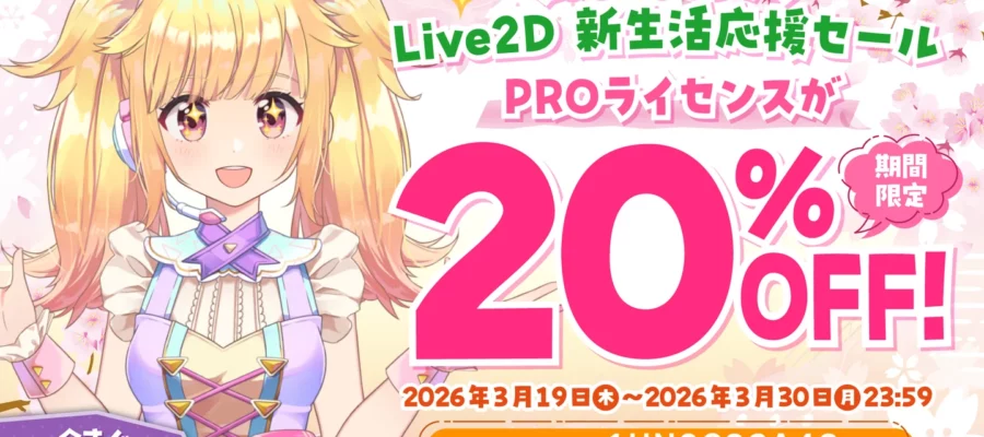Live2D 2026年3月19日(木)~2026年3月30日(月)の11日間限定で『Live2D Cubism PRO ライセンス』が20%OFFでご購入頂けるクーポンを配布します! イラストを動かす VTuberモデ…