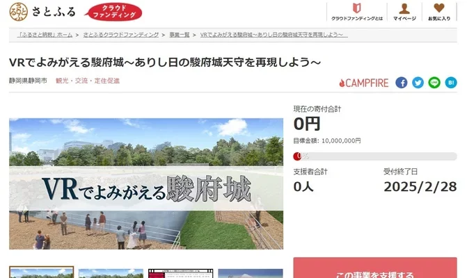 株式会社さとふる 静岡県静岡市とふるさと納税ポータルサイト「さとふる」を運営する株式会社さとふる(本社:東京都中央区、代表取締役社長 兼 CEO:藤井 宏明)は、「さとふるクラウドファンディング」にて、「VRでよみがえる…