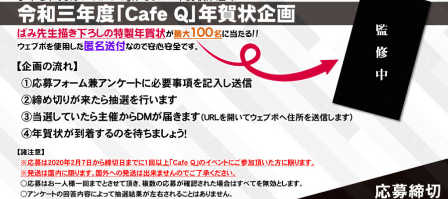 バーチャルライフマガジン VRChat内にて毎週土曜日開催されている、PC VR/Oculus Quest両対応のカフェ型交流イベント『Cafe Q』の年賀状企画の応募が開始されました。 昨年に引き続き2回の開催となる当…