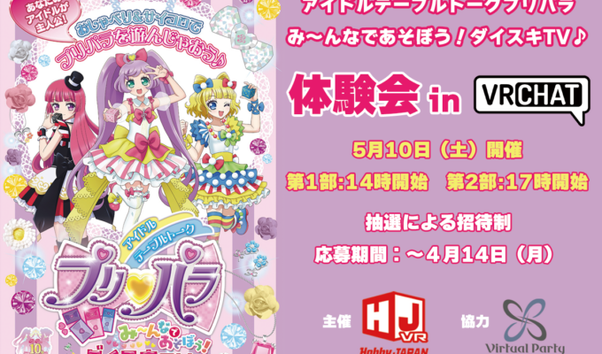 ホビージャパンは31日、プリパラシリーズの10周年を記念したテーブルトークRPGの新製品「アイドルテーブルトークプリパラ み~んなであそぼう!ダイスキTV♪」の体験会を2025年5月10日にVRChatで開催することを発…