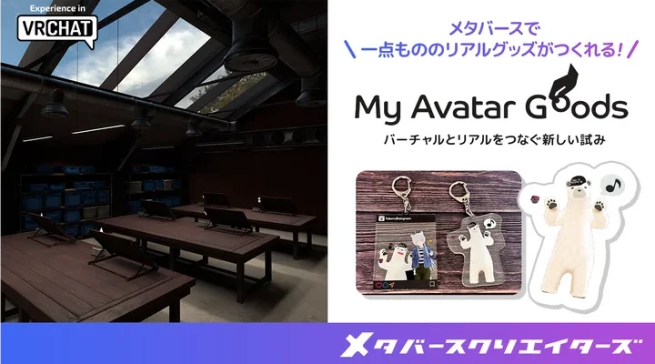 株式会社メタバースクリエイターズ 株式会社メタバースクリエイターズ(本社:東京都渋谷区、代表取締役:若宮和男、以下「当社」)は、VRChat上で自分のアバターや友達のアバターの画像を撮影し、オリジナルグッズ注文用のデザイ…