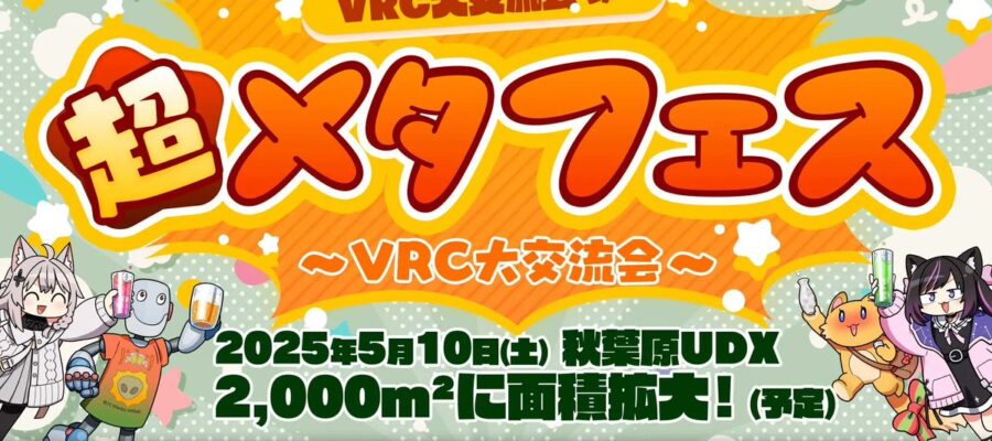 2024年12月21日に秋葉原UDXにて開催された「VRC大交流会」が名前を改め「超メタフェス ~VRC大交流会~」となって、2025年5月10日に秋葉原UDXにて開催されることが発表された。 VRC大交流会はVRユーザ…