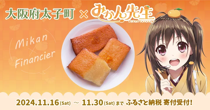 株式会社あるやうむ 大阪府太子町が、Vtuberのみかん先生とコラボし、町の名物スイーツ「ミカンシェ」をオリジナルパッケージで提供いたします。11月16日(土)から11月30日(土)までの期間限定の返礼品となり、返礼品は…