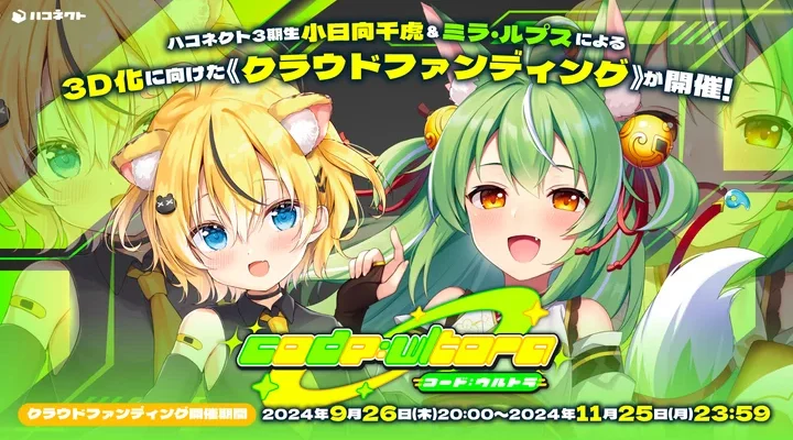 アナログ 株式会社アナログ(所在地:東京都千代田区)が運営する、VTuber事務所ハコネクトが「小日向千虎」と「ミラ・ルプス」の3Dモデル制作プロジェクトのクラウドファンディングを開始したことをお知らせいたします。 ■ク…