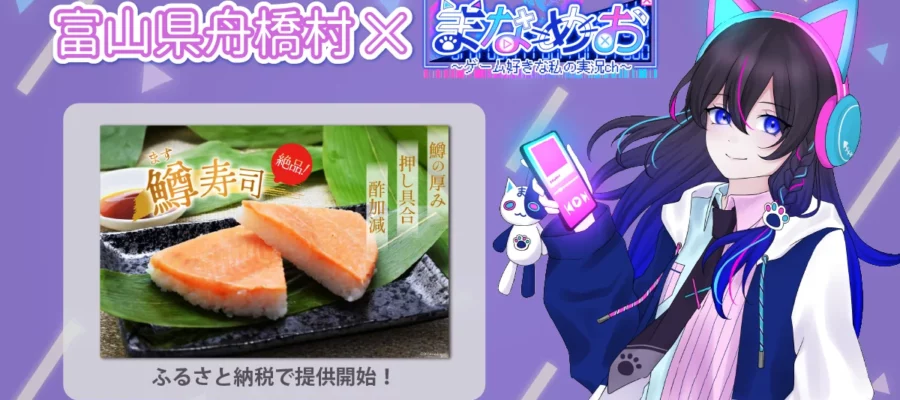 株式会社あるやうむ VTuber「まなめお」と富山名物・鱒寿司がコラボをして富山県舟橋村のふるさと納税の返礼品として11月14日(金)19時より提供開始しました。返礼品は株式会社あるやうむ(本社:北海道札幌市、代表取締役…