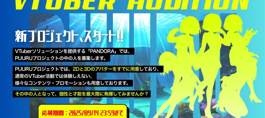 株式会社PANDORA VTuberソリューションを提供する株式会社PANDORA(本社東京都渋谷区、代表取締役:宮瀬卓也/和泉義博)は次世代VTuberを発掘・育成する「PUURUプロジェクト」において、“中の人”とな…