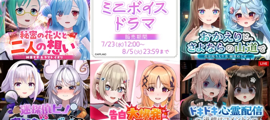株式会社アップランド アップランド所属「.LIVE」・「ぶいぱい」メンバーによるミニボイスドラマ5種を2025年7月23日(水)より販売いたします!5つのペアに分かれたメンバーたちが、それぞれ個性あふれるテーマを持って登…