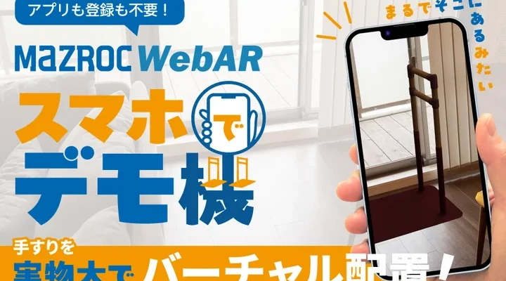 マツ六株式会社 マツ六株式会社(本社:大阪市天王寺区四天王寺1丁目5番47号、代表取締役社長:松本 將)は、WebAR 『スマホでデモ機』を2024年2月1日にリリースしました。 手すりを選定する際に重いデモ機を持って行…