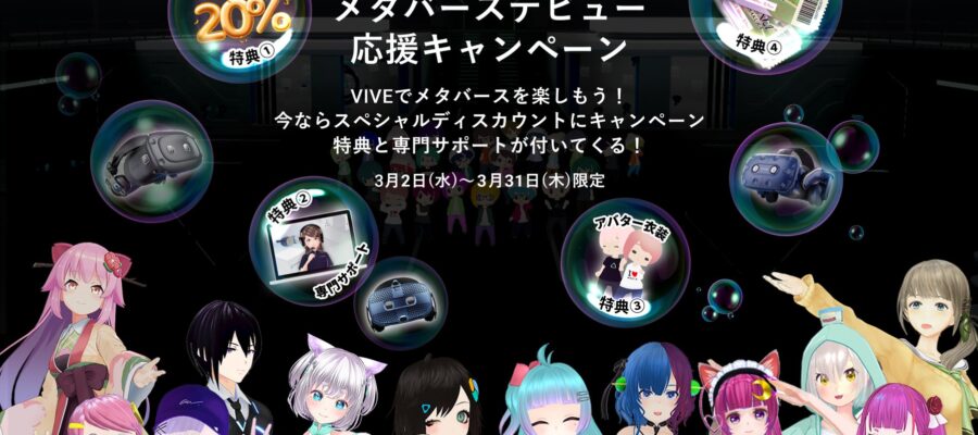 HTC NIPPON株式会社 HTC NIPPON株式会社(東京都中央区、代表取締役社長:児島全克、以下HTC)は、2022年3月2日(水)〜3月31日(木)にわたり、「メタバースデビュー応援キャンペーン」を実施すること…