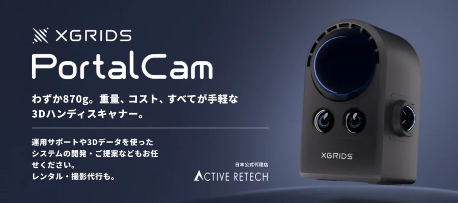 株式会社アクティブリテック 持ち歩くだけで周囲の景色をそのままVRにできる、高画質・高精度3Dハンディスキャナー・XGRIDSシリーズから新登場のPortalCamは、シリーズ中最も軽量・小型でありながら、高精度な3Dキ…