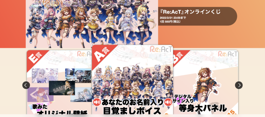 mikaiが運営するバーチャルタレント事務所「Re:AcT」は、「くじプラ」とのコラボにより「Re:AcT」オンラインくじを発売した。期間は2月21日の23:59までの期間限定で販売する。 ●販売サイト https://…