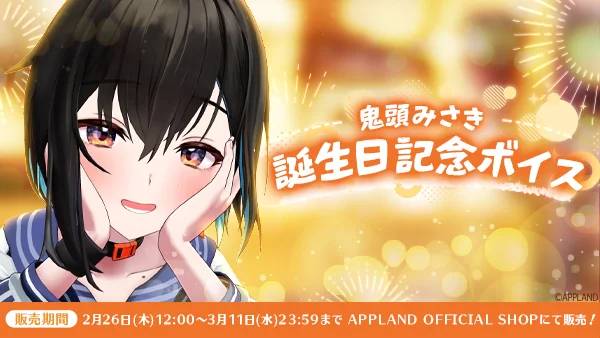 株式会社アップランド 株式会社アップランド(本社:東京都世田谷区)が運営するVTuberグループ「ぶいぱい」鬼頭みさきの誕生日を記念して、限定ボイスをAPPLAND OFFICIAL SHOPおよびAPPLAND BO…