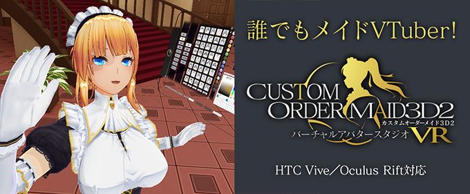 KISSは19日、2月23日に発売したアダルトゲーム「カスタムオーダーメイド3D2」(COM3D2)の無償追加アップデート(バージョン1.10)として、プレイヤーが美少女キャラクターになりきれる「バーチャルアバタースタジオ」機能を追加した。動作にはOculus RiftかHTC VIVEが必要。VIVE Trackerにも対応しており、VRゴーグルの代わりに頭に載せたり、足や腰に装着することで体の位置をキャラクターに反映できる。