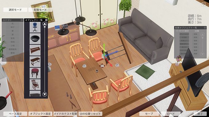 スタジオモードでは、光源や背景などのほか、椅子やテーブルなど、ゲーム中の小道具をVR空間で配置できる。